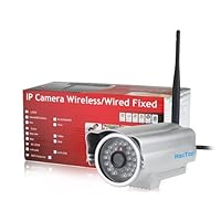 HooToo® HT-IP212F Outdoor Wired/Wireless Waterproof Network IP Camera, 1/4" CMOS Sensor, M-JPEG Video Format, Built-in 24-LED Illuminators (Night Vision Up To 20 Meters), Embedded IR Filter for Much Real Colors, FTP Image Upload, Motion Detection & Emai...