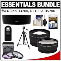 Essentials Bundle for Nikon D3200, D5100 & D5200 Digital SLR Camera and 18-55mm VR Lens with 3 Filters + Hood + Tripod + Tele/Wide Lenses + ML-L3 Remote Kitthere are a lot of things in the kit, the most valuable thing will be the wide angle and tele. if u put the wide angle on your lens, it will cut the four corners of the image. other stuff in the kit is fine