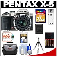 Big plus, long life on the batteries. Bigger plus, AA batteries!!!I ordered this Pentax X-5 camera kit as a Christmas gift and have been very impressed with the camera & the accesory kit. We took it to Gatlinburg TN for New Years Eve and took some outstanding pictures of the ball drop. I was also very happy with the quick delivery before Christmas. Great job Amazon & Cameta Camera. I will gladly recommend this camera & distributors to anyone.Pentax X-5 Megazoom 16.0 MP Digital Camera (Silver) with 16GB Card + Batteries/Charger + Case + 2 Tripods + Accessory Kit