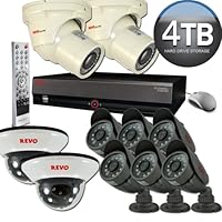 Review of Revo R4D1FB3DCMB-5G 4-Channel Combo Security System with DVR and 10.5-Inch Monitor.CAMERAS. Love the cameras, they are small designed and look very well made, single corded not double corded like many other security cameras. They have a wide angle covering very large areas, the image is clear and much better than wireless cameras, the colors are true and bright and also ajustable for each camera. All cameras powered by single monitor/DVR adapter. Cameras have audio recording option which I used once, it was fine but normally I don't use it to save space on hard drive. The video quality can be ajustable for each camera. Each camera can be scheduled for recording as continuous recording or motion detection and also for different time of day. Each camera has motion sensor sensitivity adjustment, also areas with constant movement, like tree branches can be blocked. Cameras also have night vision which turns on automatically when it gets dark. The night vision image is good enough, can recognize person from 20 feet away in total darkness. Cannot judge how weatherproof they are, cameras were not exposed to extreme weather conditions yet.